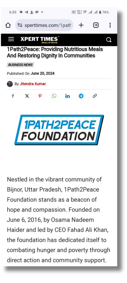 1Path2Peace Foundation, since 2016 has always tried to serve the ummah on mass basis and that what their main aim and vision is